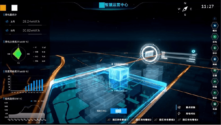 在園區(qū)、建筑、樓層中實現(xiàn)供電、供水、網(wǎng)絡(luò)主管線在空間中的展示