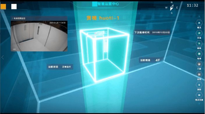 集成電梯管理系統(tǒng),在三維場景中展示電梯分布、運行狀態(tài)